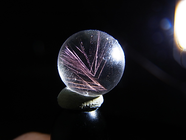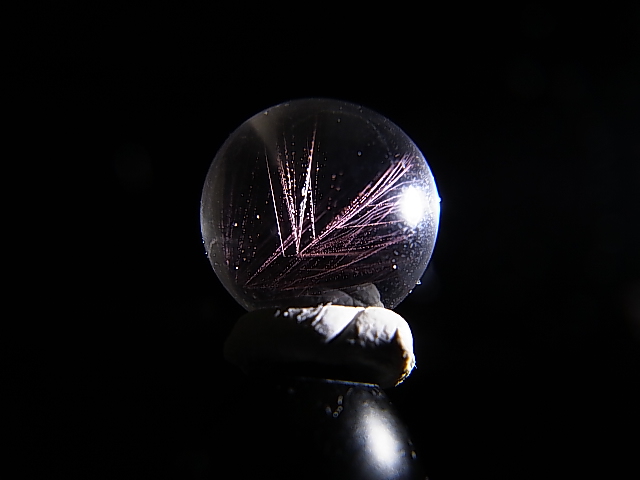 水晶(丸玉加工)の内部に非常に希なティンダルエフェクト(チンダル効果)現象の
