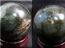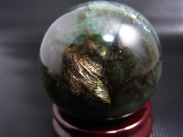 ピンクやブルーのシラーが綺麗に見えるラブラドライトの丸玉です。