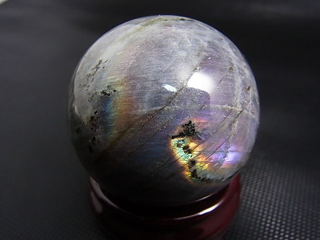パープルピンクやブルーのシラーが綺麗に見えるラブラドライトの丸玉です。