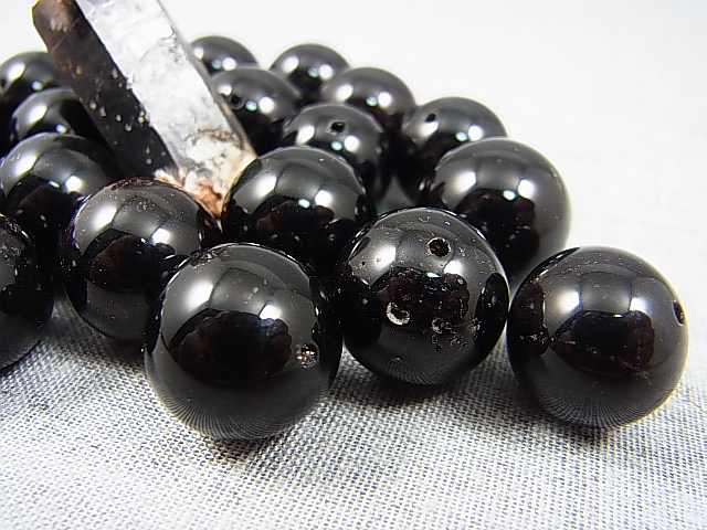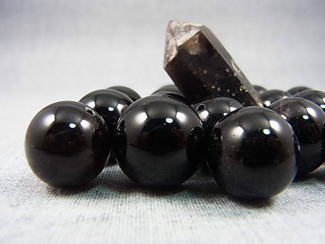 オリジナル加工:フィンランド・リプシニエミ産モリオン(黒水晶/ケアンゴーム)・ビーズ 15.5mm平均[PR5194]