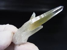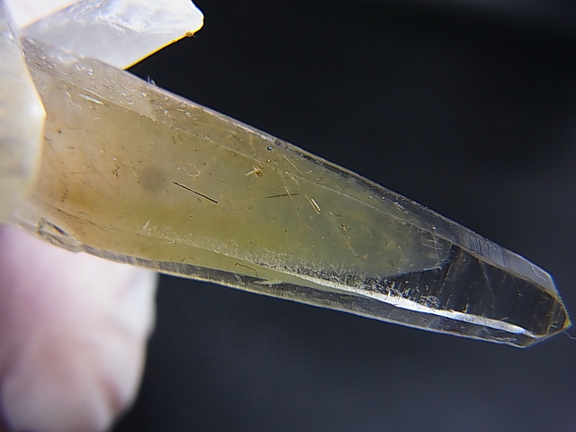 細く尖ったレーザーポイントでテッシンハビット型の美しい水晶の内部は