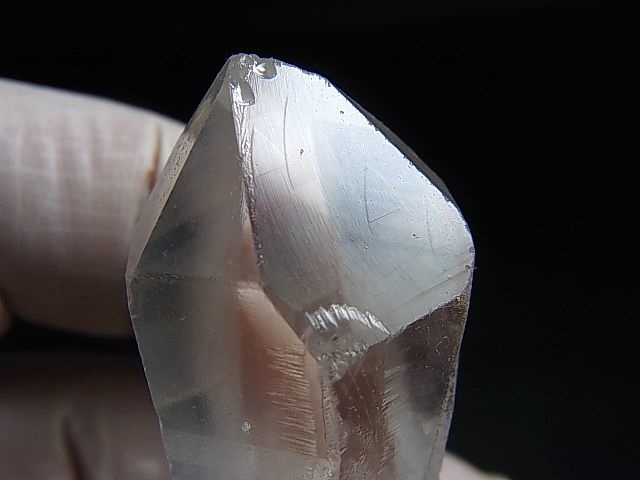 本品は非常に透明な水晶の錐面にレコードキーパー△(成長丘)が見られる水晶です。