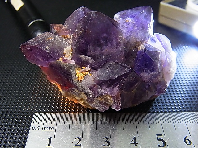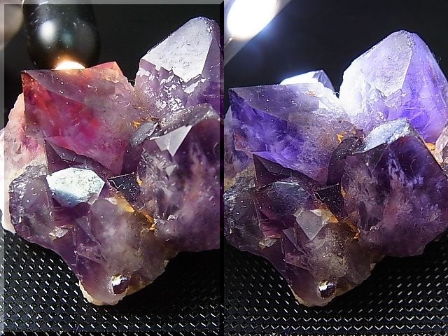 濃い紫色と白熱灯によるカラーシフト(紫→赤)が特徴的なサンプルです。