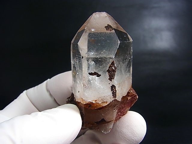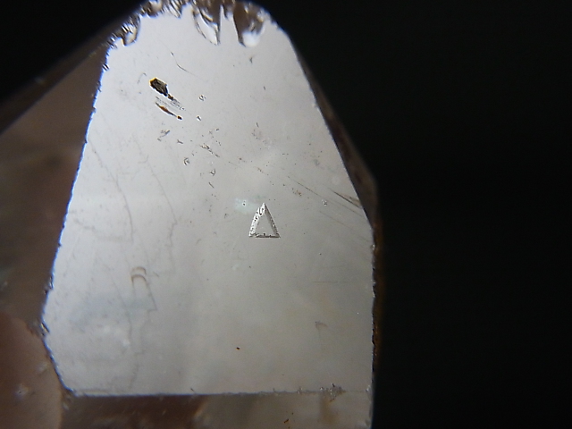 本品は非常に透明な水晶の錐面にレコードキーパー△(成長丘)が見られる水晶です。