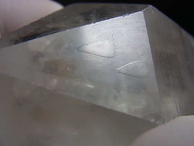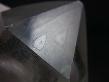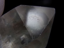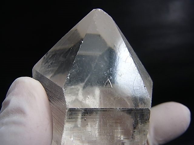 本品は非常に透明な水晶の錐面にレコードキーパー△(成長丘)が見られる水晶です。