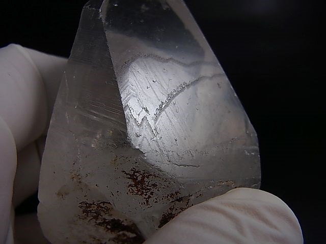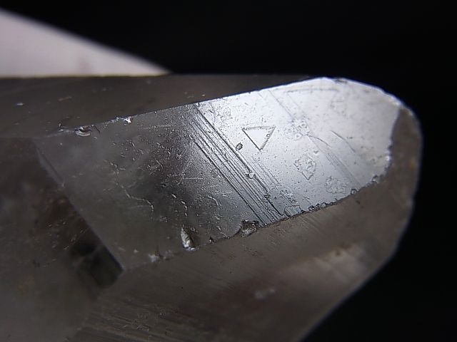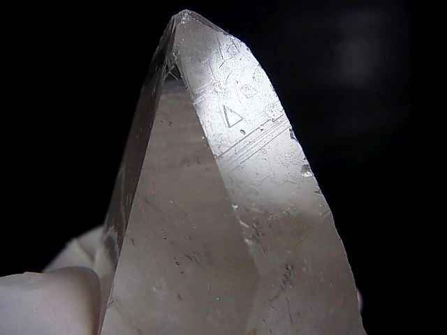 本品は非常に透明な水晶の錐面にレコードキーパー△(成長丘)が見られる水晶です。