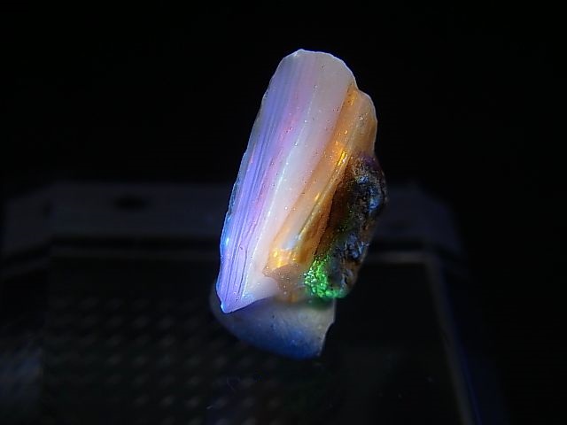 コモンオパールに属し、蛍光の原因は金・銀・鉄やアンチモンなどのレアメタル(希土類鉱物)と言われています。