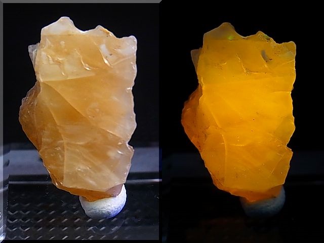 1970年代に北海道大雪山系の然別(しかりべつ)湖で発見された蛍光オパールです。